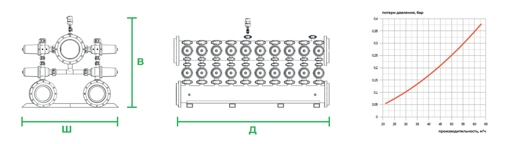 Системы серии High Flow Н применяются в крупногабаритных установках, где фильтры расположены горизонтально с обеих сторон главного коллектора. Режим промывки фильтров программируется на щите управления по разнице давлений или/и по времени. Предназначены для обработки интенсивных потоков, где отсутствует необходимость подачи вод для очистки из внешнего источника. Промывка всех фильтров осуществляется одновременно через общий коллектор. Комплектуется автоматическими дископоворотными задвижками. Системы могут быть укомплектованы дополнительными опциями.
